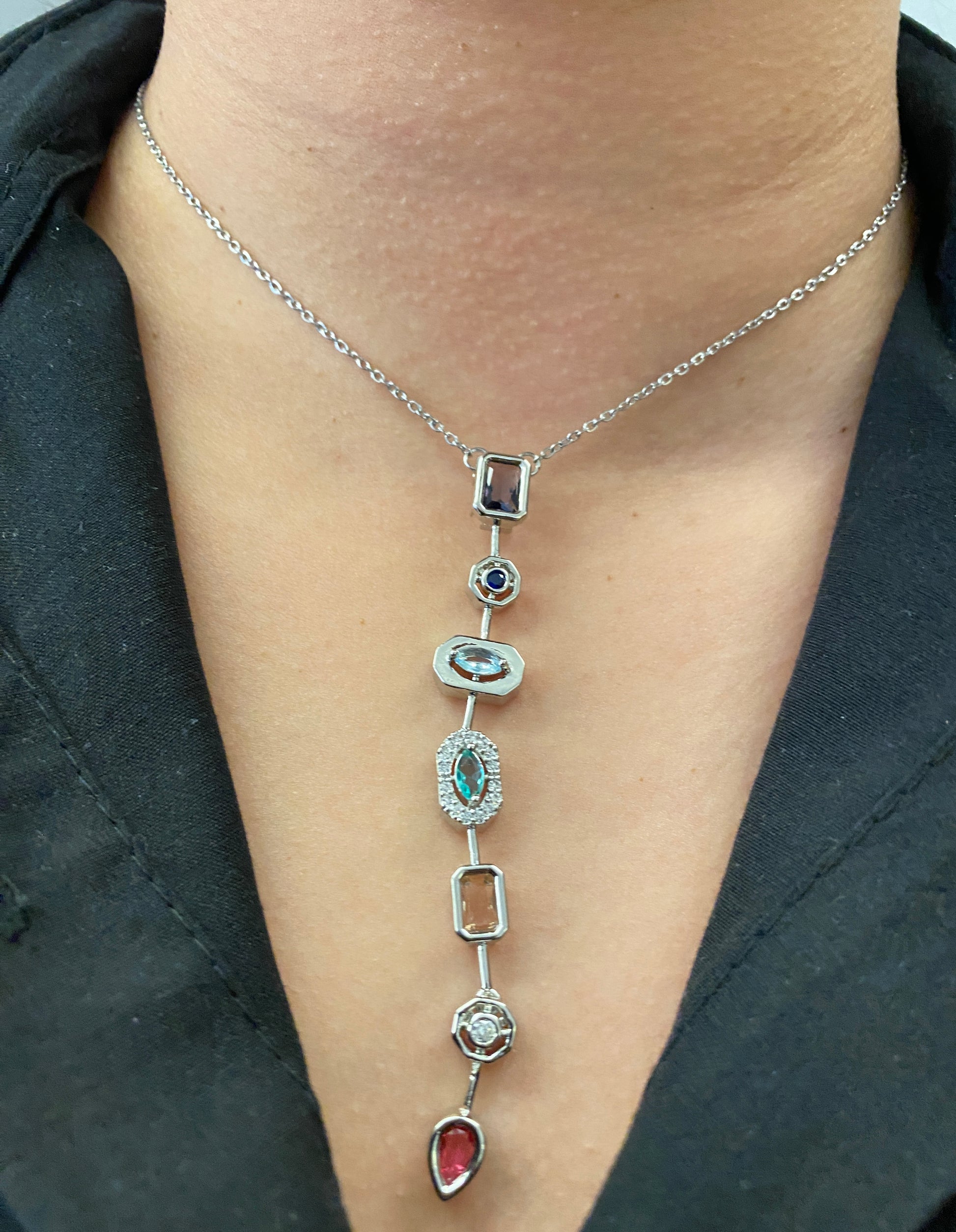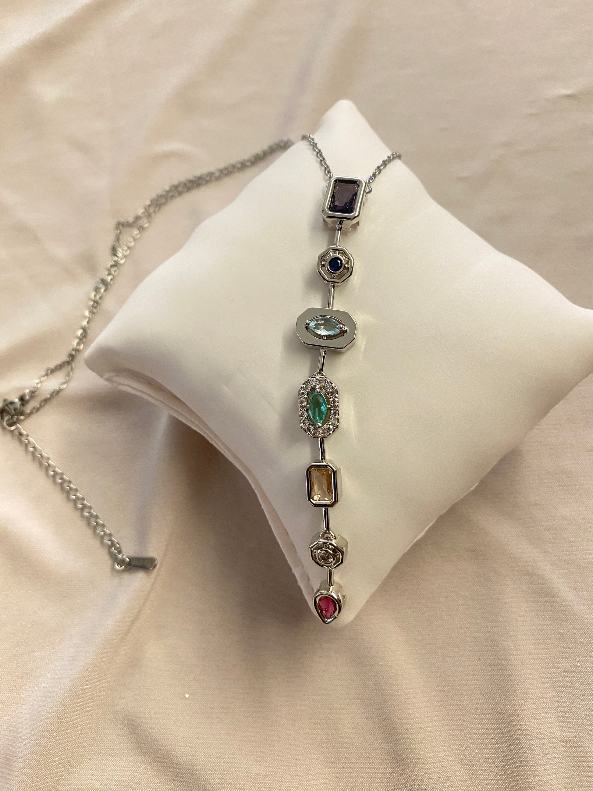 VALORE™ – 7 Elementli Zirkon Taşlı “Y” Tasarım Kolye (Gümüş Kaplama Çelik)