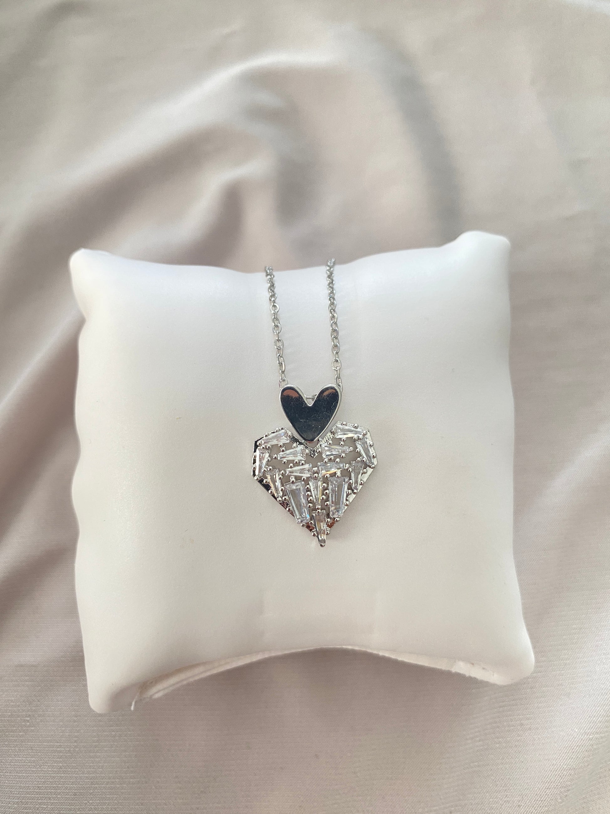 Zarif kalp formu ve ışıltılı zirkon taş detaylarıyla dikkat çeken bu özel tasarım kolye, günlük şıklığına romantik ve gösterişli bir dokunuş eklemek isteyenler için idealdir. Paslanmaz çelikten üretilmiş olup çelik kaplama yüzeyiyle uzun süre parlaklığını korur. Alerji yapmayan yapısıyla hassas ciltlere de uyumludur.