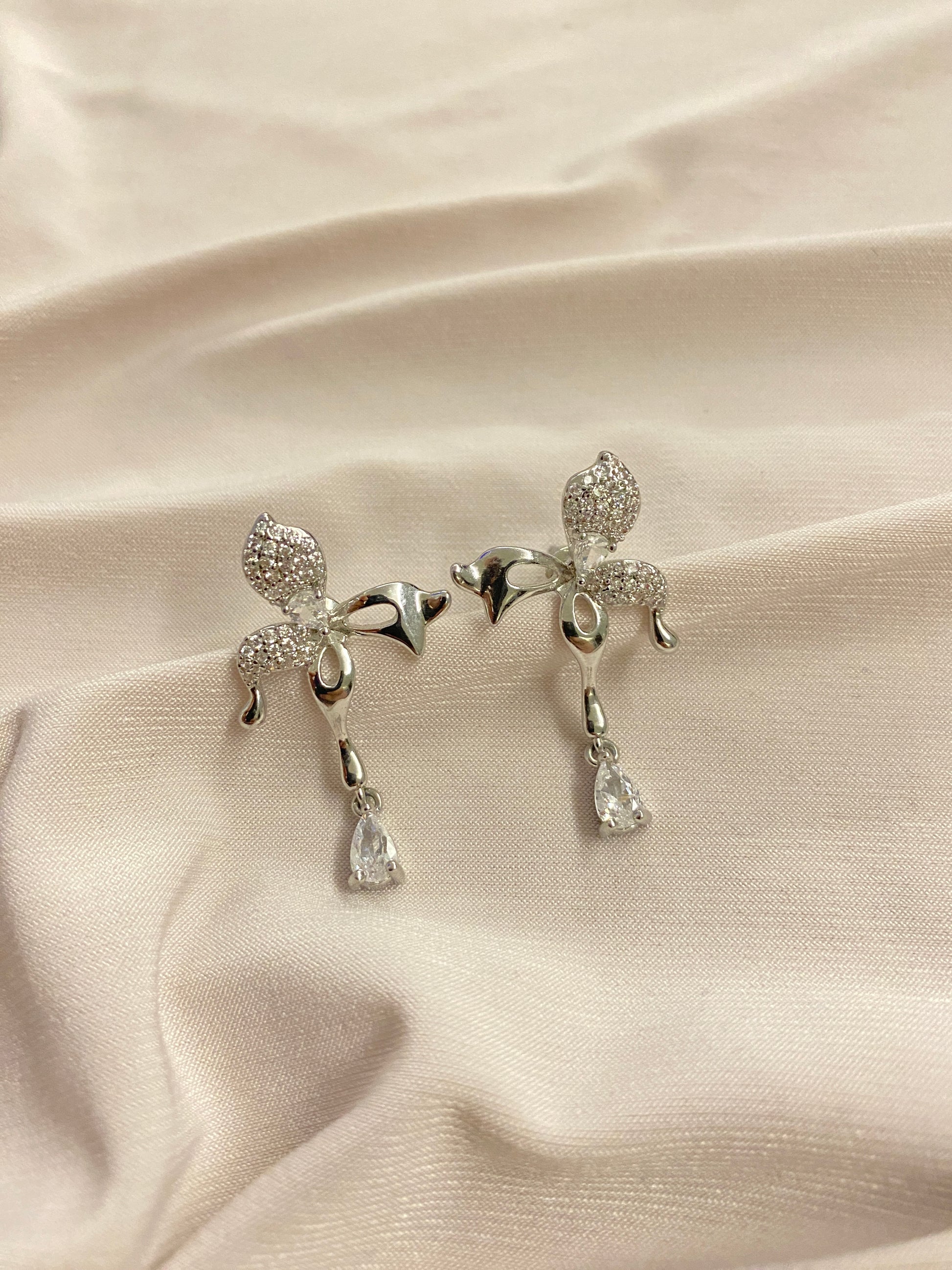 VALORE™ – Pirinç Gümüş Renk Zirkon Taşlı Kuş Model Küpe