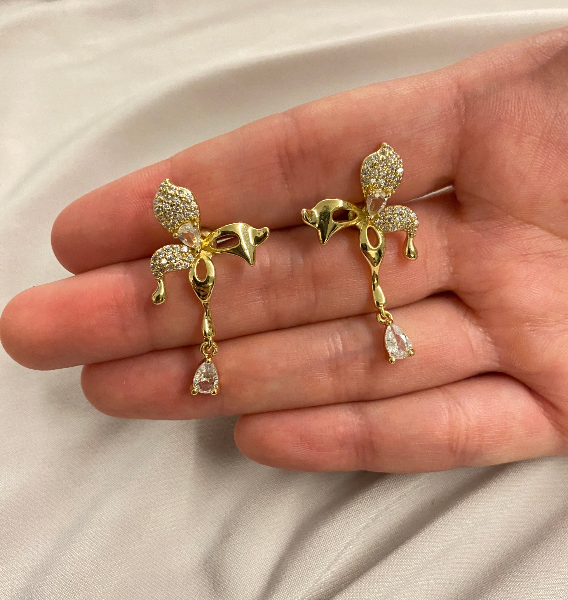 Ürün Adı: Pirinç Altın Renk Zirkon Taşlı Kuş Model Küpe