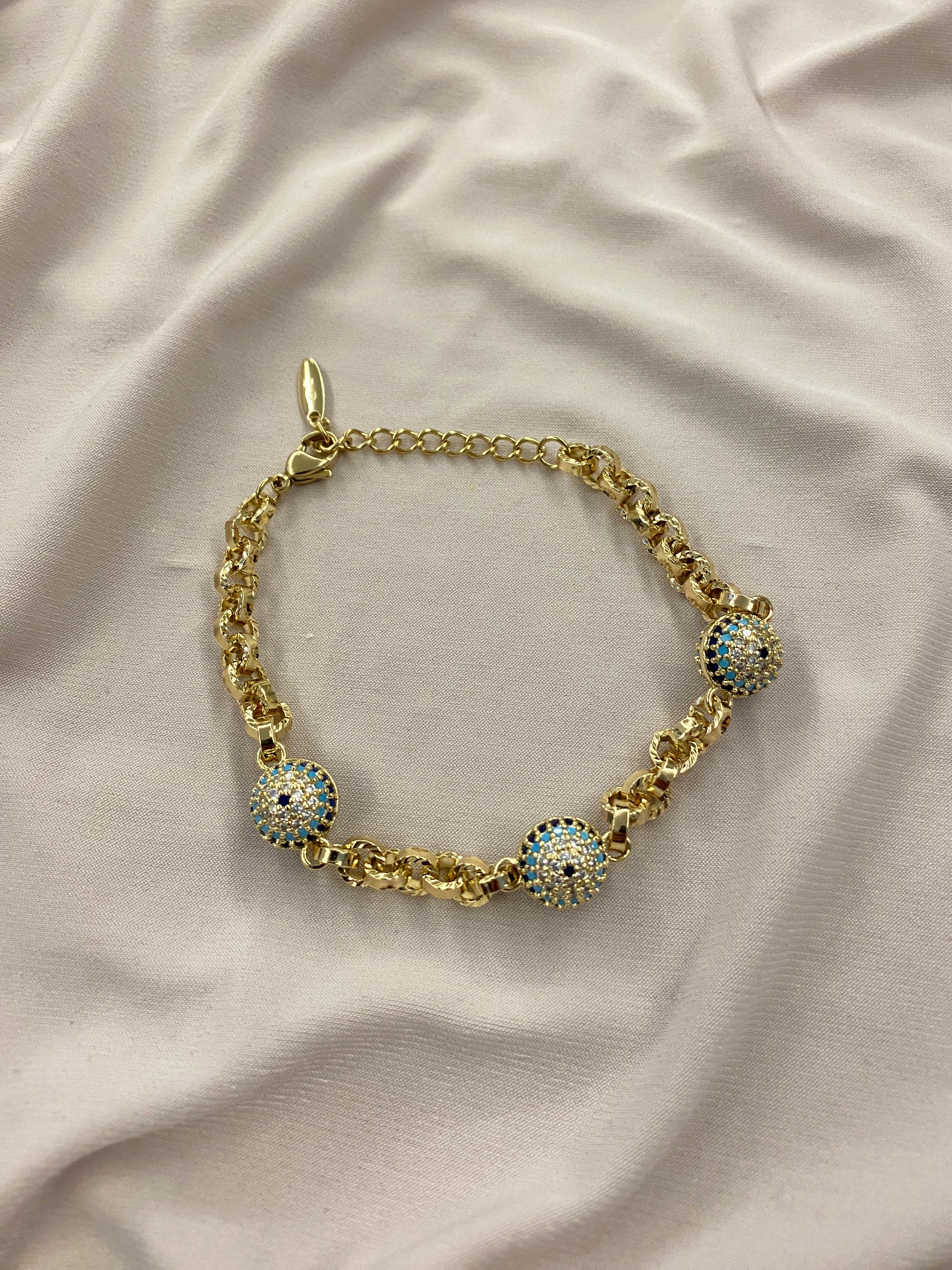 Ürün Adı: Valore 14K Gold Rengi Nazar Boncuklu Taşlı Xuping Bileklik