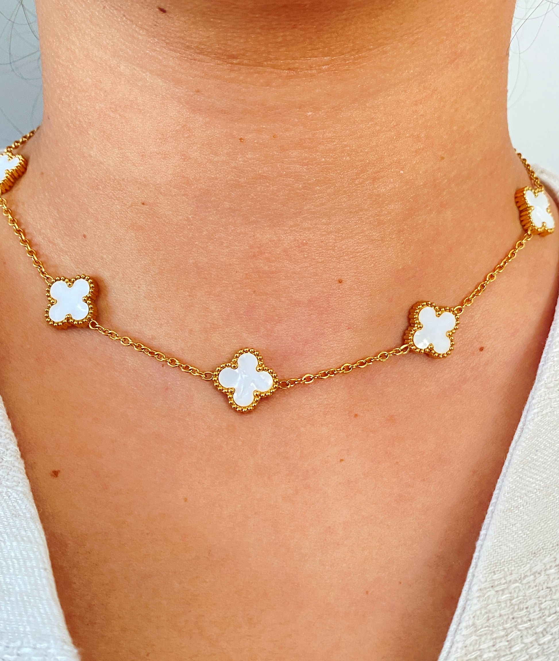 VALORE ÇELİK ALTIN RENGİ BEYAZ MİNELİ YONCA KOLYE