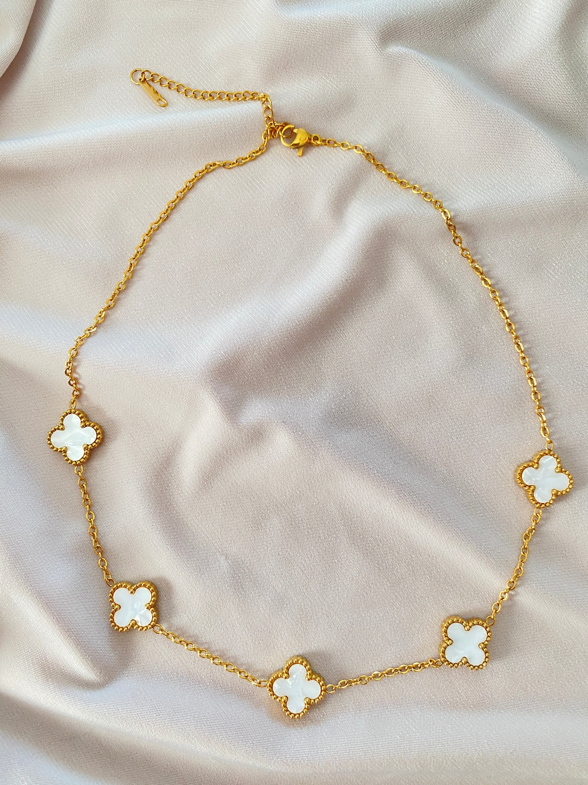 Valore Atelier Çelik Altın Rengi Beyaz Mineli Yonca Kolye